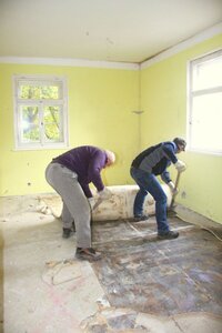 Am kommenden Sonnabend, 29.10.2016 sollen die restlichen Fußböden herausgebrochen und entsorgt werden. Auf dem Boden sind noch Holzverkleidungen zu demontieren und Dämmstoff zu entsorgen. Es ist auch noch einiges an Schutt zu beräumen.