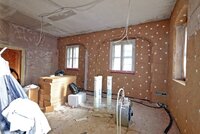 Das gesamte Haus hat nunmehr neue Fenster erhalten. Auch das neue Heizaggregat wurde bereits installiert, so dass das gesamte Haus nun beheizt werden kann. Vorerst werden dafür aber mobile Heizkörper eingesetzt. Alle Außenwände wurden an der Innenseite des Hauses mit einer Wärmeisolierung versehen.