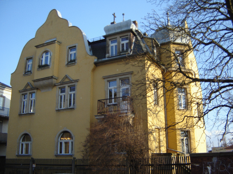 Die Wohnung ist 1. Etage des Gemeindehauses auf der Homiliusstraße gelegen. Das Gebäude steht auf einem Grundstück mit sehr großzügigen Freiflächen und schattenspendendem Baumbestand, die Flächen sind in Abstimmung mit den Interessen der Kirchgemeinde und der anderen Mieter zugänglich. Die Homiliusstraße liegt in unmittelbarer Nähe der Elbaue. Der Elbepark ist fußläufig in 10 min erreichbar, zu Straßenbahn (9, 13) und Bus (70, 80) sind es 5 min.