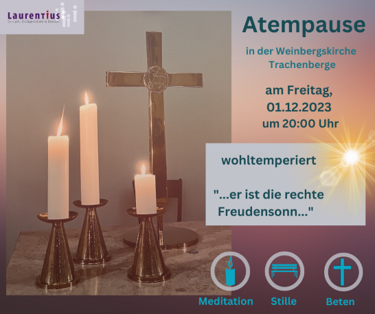Die nächste Atempause findet am Freitag, den 1.12. um 20 Uhr in der Weinbergskirche Trachenberge statt.