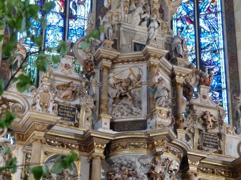 Danach ging es zum Mittagessen in den Gasthof Lindental nach Pirna-Zuschendorf. Das nächste Ziel unserer Fahrt war die große und beeindruckende St. Marienkirche in Pirna. Bei einer Führung konnten wir unter anderem das wundervolle Deckengewölbe mit herrlicher Bemalung, den Taufstein, den Johann Wolfgang von Goethe in seinen Reisebeschreibungen bekannt gemacht hat, und den Renaissance-Sandsteinaltar gestaltet von Michael Schwenke bestaunen.
