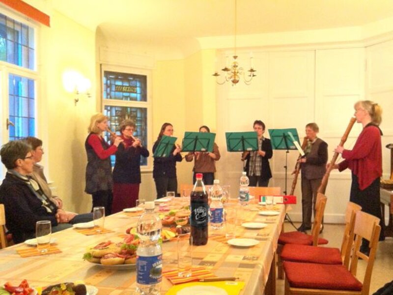 Erstmalig wurde die Mitgliederversammlung musikalisch und kulinarisch umrahmt, so dass für die anwesenden Vereinsmitligeder vielfältige Möglichkeiten bestanden, miteinander ins Gespräch zu kommen. Ein herzliches Dankeschön dem Flötenkreis und allen, die mit ihren Beiträgen zur gelungenen Mitgliederversammlung beigetragen haben.