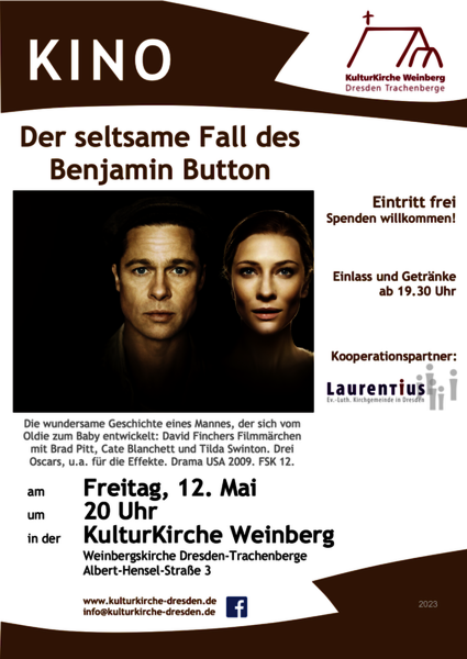 Die wundersame Geschichte eines Mannes, der sich vom Oldie zum Baby entwickelt: David Finchers Filmmärchen mit Brad Pitt, Cate Blanchett und Tilda Swinton. Drei Oscars, u.a. für die Effekte. - In New Orleans kommt 1918 ein Junge mit dem Aussehen eines Greises zur Welt. Queenie (Taraji P. Henson) zieht den kuriosen Benjamin (Brad Pitt) in ihrem Altenheim groß. Bald ist klar: Im Gegensatz zu seinem echten Alter wird Benjamin körperlich von Tag zu Tag jünger. Zur zauberhaften Daisy (Cate Blanchett) entwickelt der kleine Alte große Gefühle, die sich Jahre später erfüllen.