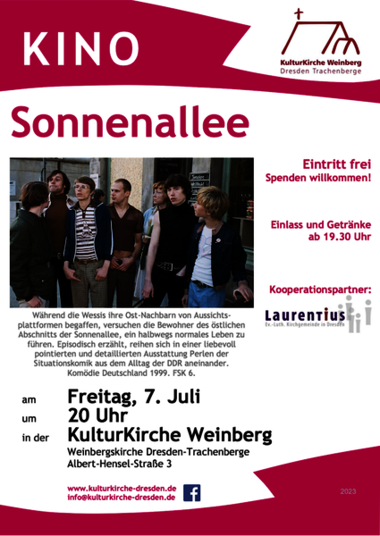 Freiag, 7. Juli 2023, 20 Uhr KulturKirche Weinberg Dresden-Trachenberge Sommerkino "Sonnenallee"