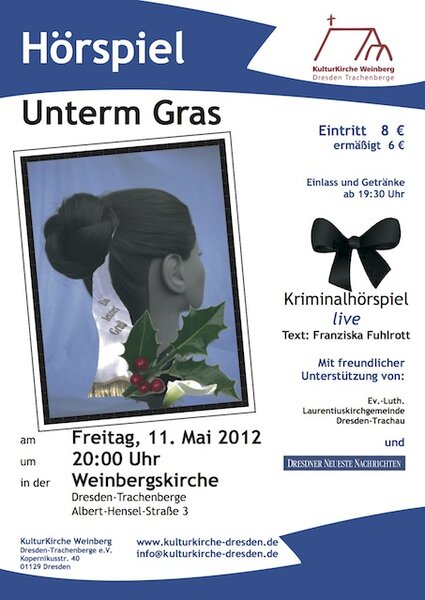 Diese Frage steht im Mittelpunkt des Live-Kriminalhörspiels mit dem Titel "Unterm Gras", das am Freitag, dem 11. Mai 2012, 20 Uhr, in der KulturKirche Weinberg (Weinbergskirche) zu erleben sein wird. Der Text dieses Stückes stammt aus der Feder von Franziska Fuhlrott und wird in der besonderen Atmosphäre der Kirche lebendig werden.