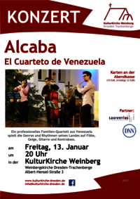 Ein professionelles Familien-Quartett aus Venezuela spielt die Genres und Rhythmen seines Landes auf Flöte, Geige, Gitarre und Kontrabass. Eintrittskarten sind an der Abendkasse (15 EUR, ermäßigt 12 EUR) erhältlich.