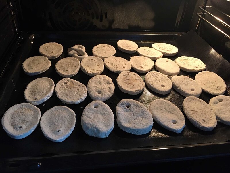 ... Backen und später Anmalen von Salzteig-Ostereiern.