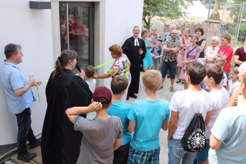 Am 17. Juni 2018 wurde das Kaditzer Pfarrhaus in einem Festgottesdienst wieder eröffnet. Nachdem das Eröffnungsband vor einem der neuen Zugänge feierlich zerschnitten worden war, konnten wir die Räume wieder in Besitz nehmen. Wir sind sehr dankbar, dass dieses besondere Gebäude jetzt für die Nachwelt erhalten ist und in dem beeindruckenden Ensemble, zu dem neben der Emmauskirche und dem großen Pfarrgarten auch die tausendjährige Linde gehört, auf vielfältige Weise genutzt werden kann.